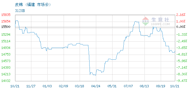 10月10日福建地区关于皮棉的报价为14875元/吨。皮棉的规格:3128B。该报价有效期为1天。报价提供方:福建市场。