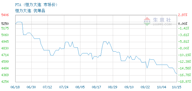 10月10日恒力大连PTA为4500元