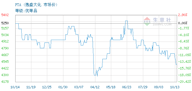 10月13日逸盛大化关于PTA的报价为4500元/吨。PTA的规格:等级:优等品。该报价有效期为3天。报价提供方:南京外恩化工科技有限公司。