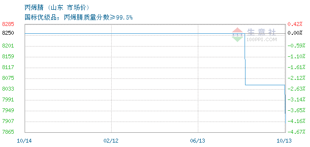 10月13日山东关于丙烯腈的报价为7900元/吨。丙烯腈的规格:国标优级品;丙烯腈质量分数≥99.5%。该报价有效期为7天。报价提供方:山东正淳化工有限公司。