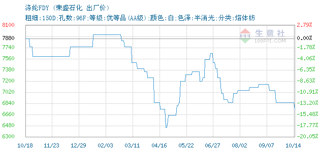 10月14日荣盛石化涤纶FDY为6750元