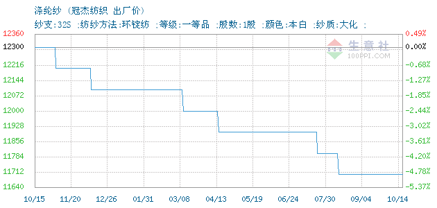 10月14日冠杰纺织32S涤纶纱为11700元
