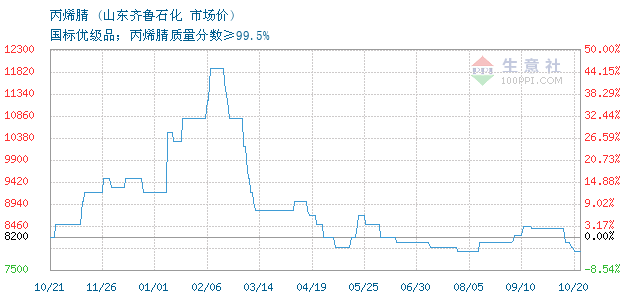 10月17日山东齐鲁石化关于丙烯腈的报价为7900元/吨。丙烯腈的规格:国标优级品;丙烯腈质量分数≥99.5%。该报价有效期为3天。报价提供方:上海溶和化工有限公司。