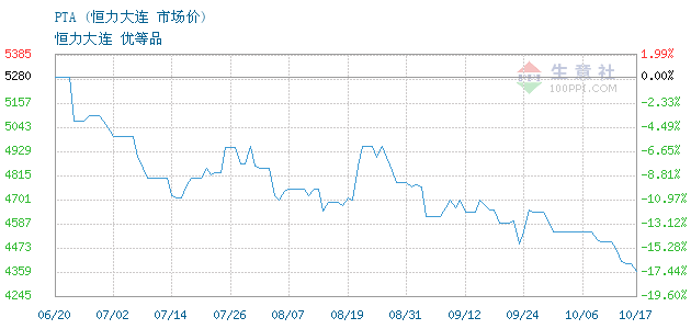 10月17日恒力大连PTA为4360元