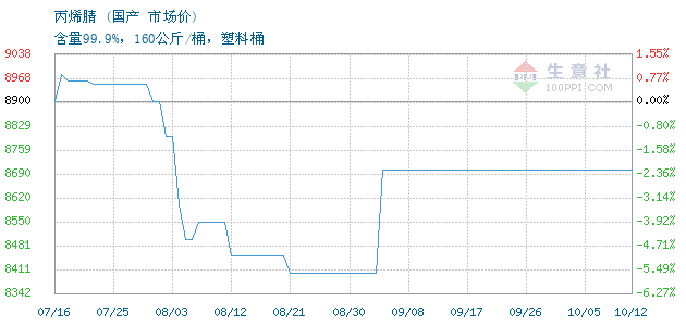10月06日国产关于丙烯腈的报价为8700元/吨。丙烯腈的规格:含量99.9%,160公斤/桶,塑料桶。该报价有效期为3天。报价提供方:山东兴鹏永发化工有限公司。