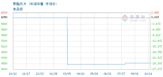 10月06日华润华蕾关于聚酯切片的报价为4600元/吨。聚酯切片的规格:食品级。该报价有效期为1天。报价提供方:武汉市恒久化工有限公司。