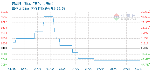 10月08日山东齐鲁石化丙烯腈为8400元 2025-10-08