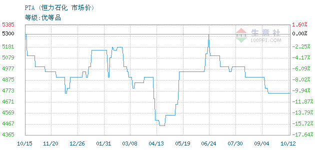 10月09日恒力石化关于PTA的报价为4750元/吨。PTA的规格:等级:优等品。该报价有效期为3天。报价提供方:上海溶和化工有限公司。