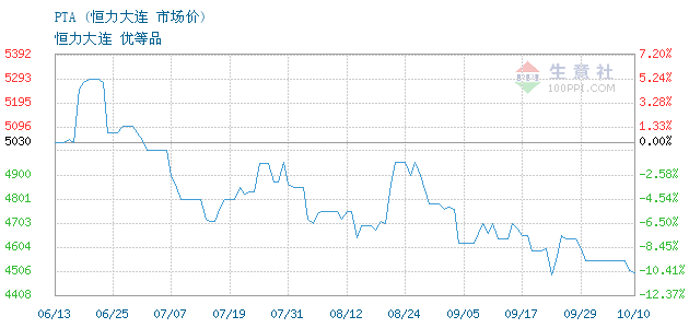 10月09日恒力大连PTA为4510元