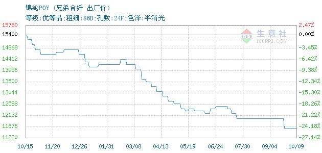 10月09日海安县兄弟合成纤维有限公司 关于锦纶POY的报价为11600元/吨。锦纶POY的规格:等级:优等品;粗细:86D;孔数:24F;色泽:半消光。该报价有效期为3天。报价提供方:海安县兄弟合成纤维有限公司。