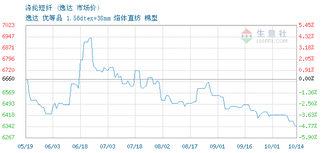 10月09日逸达涤纶短纤为6410元