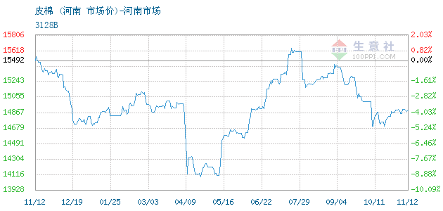 11月11日河南地区关于皮棉的报价为14883元/吨。皮棉的规格:3128B。该报价有效期为1天。报价提供方:河南市场。