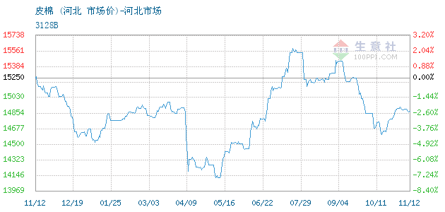 11月11日河北地区关于皮棉的报价为14870元/吨。皮棉的规格:3128B。该报价有效期为1天。报价提供方:河北市场。