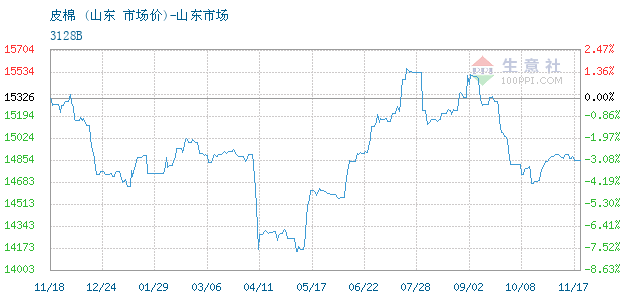11月12日山东地区关于皮棉的报价为14878元/吨。皮棉的规格:3128B。该报价有效期为1天。报价提供方:山东市场。