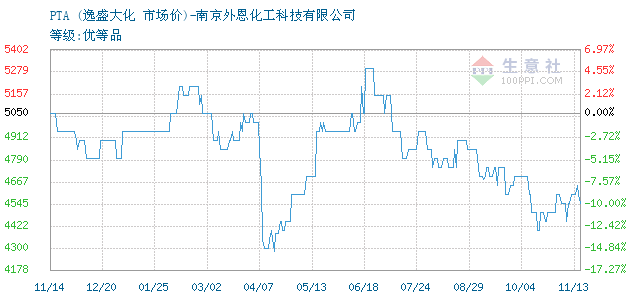 11月13日逸盛大化关于PTA的报价为4550元/吨。PTA的规格:等级:优等品。该报价有效期为3天。报价提供方:南京外恩化工科技有限公司。