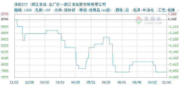 11月14日浙江吉丝涤纶DTY为7950元
