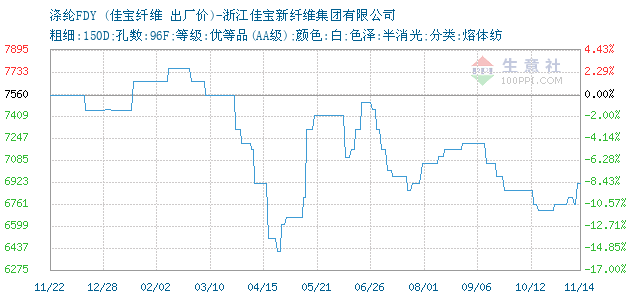 11月14日佳宝纤维涤纶FDY为6910元