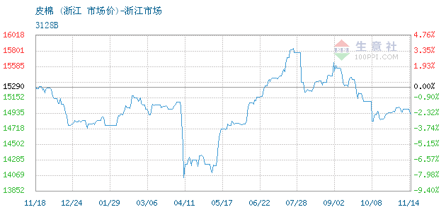 11月14日浙江地区关于皮棉的报价为14917元/吨。皮棉的规格:3128B。该报价有效期为1天。报价提供方:浙江市场。