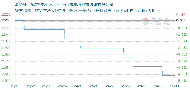 11月14日冠杰纺织32S涤纶纱为11600元