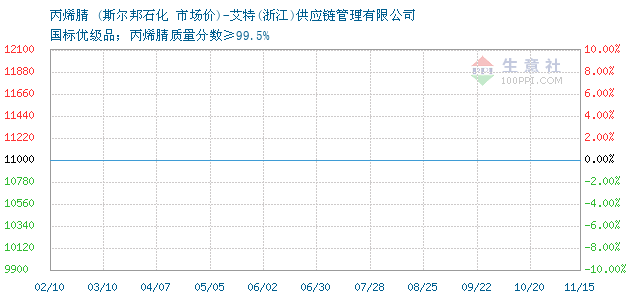 11月15日斯尔邦石化关于丙烯腈的报价为11000元/吨。丙烯腈的规格:国标优级品;丙烯腈质量分数≥99.5%。该报价有效期为1天。报价提供方:艾特(浙江)供应链管理有限公司。