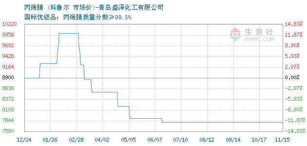 11月15日科鲁尔丙烯腈为7800元