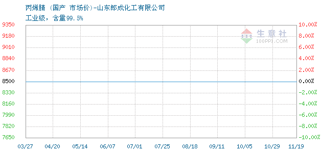 11月17日国产关于丙烯腈的报价为8500元/吨。丙烯腈的规格:工业级,含量99.5%。该报价有效期为3天。报价提供方:山东郎成化工有限公司。