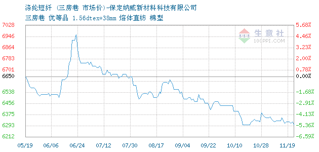 11月17日三房巷关于涤纶短纤的报价为6310元/吨。涤纶短纤的规格:三房巷 优等品 1.56dtex*38mm 熔体直纺 棉型 。该报价有效期为1天。报价提供方:保定纳威新材料科技有限公司。