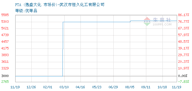 11月17日逸盛大化关于PTA的报价为5350元/吨。PTA的规格:等级:优等品。该报价有效期为1天。报价提供方:武汉市恒久化工有限公司。