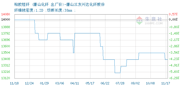 11月17日唐山化纤粘胶短纤1.2D为13400元