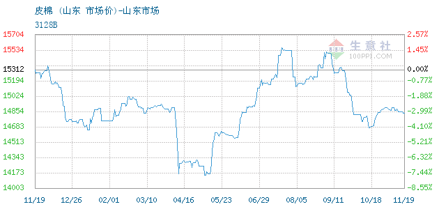 11月17日山东地区关于皮棉的报价为14847元/吨。皮棉的规格:3128B。该报价有效期为1天。报价提供方:山东市场。