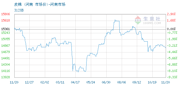 11月17日河南地区关于皮棉的报价为14846元/吨。皮棉的规格:3128B。该报价有效期为1天。报价提供方:河南市场。