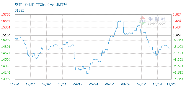 11月17日河北地区关于皮棉的报价为14805元/吨。皮棉的规格:3128B。该报价有效期为1天。报价提供方:河北市场。