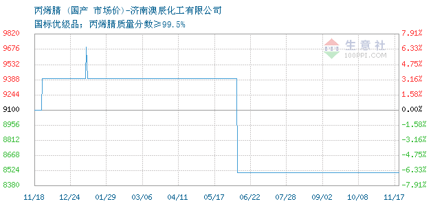 11月17日国产关于丙烯腈的报价为8500元/吨。丙烯腈的规格:国标优级品;丙烯腈质量分数≥99.5%。该报价有效期为3天。报价提供方:济南澳辰化工有限公司。