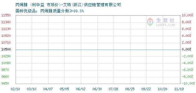 11月18日利华益关于丙烯腈的报价为10500元/吨。丙烯腈的规格:国标优级品;丙烯腈质量分数≥99.5%。该报价有效期为1天。报价提供方:艾特(浙江)供应链管理有限公司。