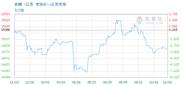 11月18日江苏地区关于皮棉的报价为14851元/吨。皮棉的规格:3128B。该报价有效期为1天。报价提供方:江苏市场。