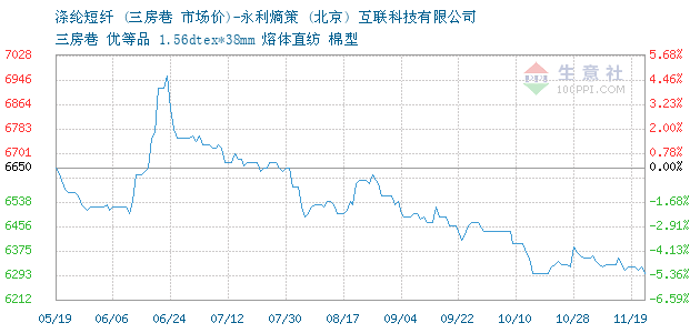 11月18日三房巷关于涤纶短纤的报价为6320元/吨。涤纶短纤的规格:三房巷 优等品 1.56dtex*38mm 熔体直纺 棉型 。该报价有效期为1天。报价提供方:永利熵策 (北京) 互联科技有限公司。