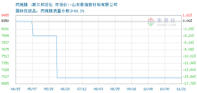 11月19日斯尔邦石化关于丙烯腈的报价为7000元/吨。丙烯腈的规格:国标优级品;丙烯腈质量分数≥99.5%。该报价有效期为3天。报价提供方:山东君烽新材料有限公司。