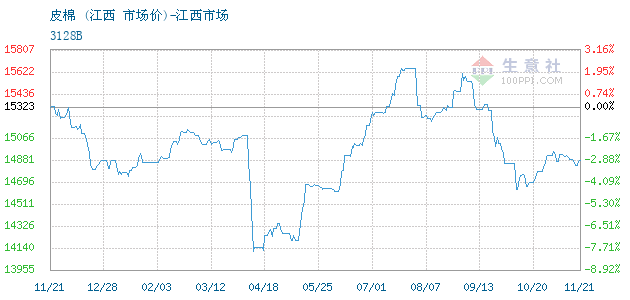 11月20日江西地区关于皮棉的报价为14869元/吨。皮棉的规格:3128B。该报价有效期为1天。报价提供方:江西市场。