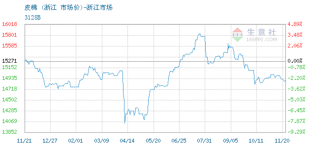 11月20日浙江地区关于皮棉的报价为14902元/吨。皮棉的规格:3128B。该报价有效期为1天。报价提供方:浙江市场。