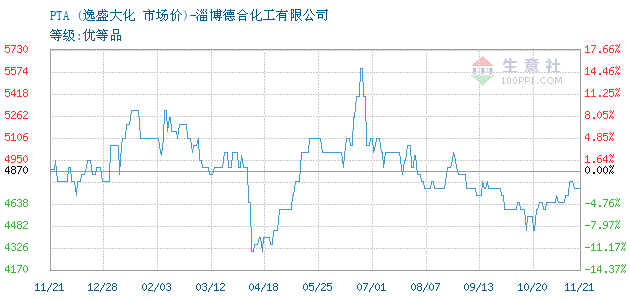 11月21日逸盛大化关于PTA的报价为4750元/吨。PTA的规格:等级:优等品。该报价有效期为3天。报价提供方:淄博德合化工有限公司。