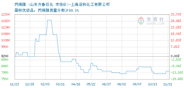 11月21日山东齐鲁石化丙烯腈为8100元