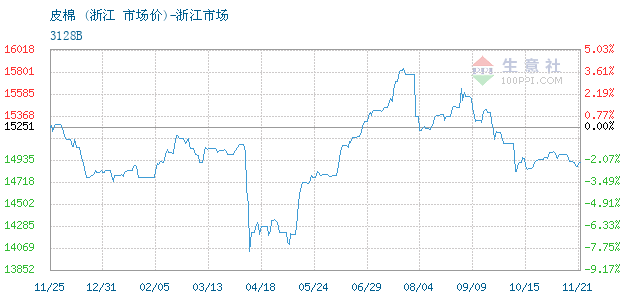11月21日浙江地区关于皮棉的报价为14912元/吨。皮棉的规格:3128B。该报价有效期为1天。报价提供方:浙江市场。