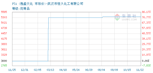 11月22日逸盛大化关于PTA的报价为5350元/吨。PTA的规格:等级:优等品。该报价有效期为1天。报价提供方:武汉市恒久化工有限公司。