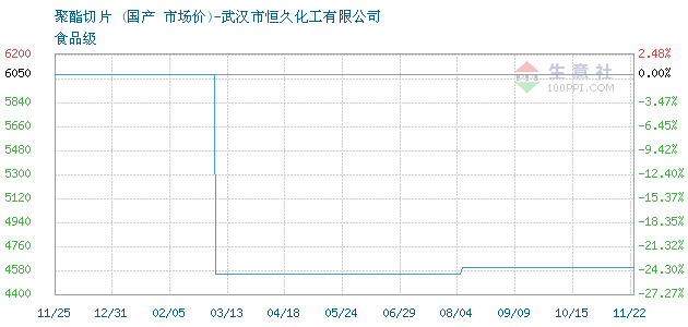 11月22日华润华蕾关于聚酯切片的报价为4600元/吨。聚酯切片的规格:食品级。该报价有效期为1天。报价提供方:武汉市恒久化工有限公司。