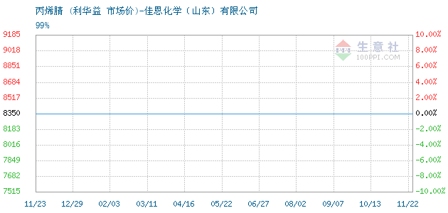 11月22日利华益关于丙烯腈的报价为8350元/吨。丙烯腈的规格:99%。该报价有效期为3天。报价提供方:佳恩化学(山东)有限公司。
