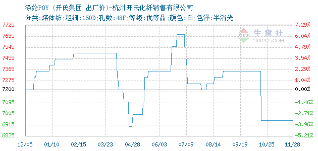 11月24日开氏集团涤纶POY为6950元