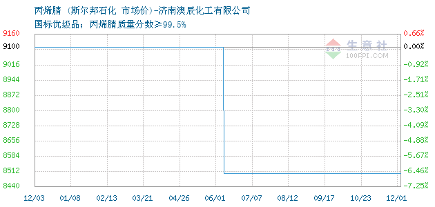 11月24日斯尔邦石化关于丙烯腈的报价为8500元/吨。丙烯腈的规格:国标优级品;丙烯腈质量分数≥99.5%。该报价有效期为3天。报价提供方:济南澳辰化工有限公司。