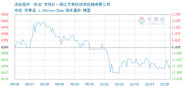 11月24日华宏关于涤纶短纤的报价为6170元/吨。涤纶短纤的规格:华宏 优等品 1.56dtex*38mm 熔体直纺 棉型 。该报价有效期为1天。报价提供方:浙江天辰纺织供应链有限公司。