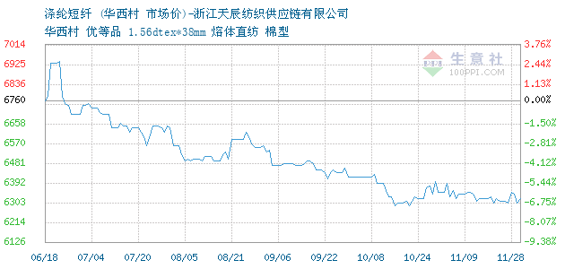 11月24日华西村关于涤纶短纤的报价为6310元/吨。涤纶短纤的规格:华西村 优等品 1.56dtex*38mm 熔体直纺 棉型 。该报价有效期为1天。报价提供方:浙江天辰纺织供应链有限公司。
