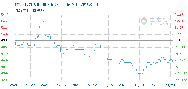11月24日逸盛大化关于PTA的报价为4650元/吨。PTA的规格:逸盛大化 优等品 。该报价有效期为1天。报价提供方:江苏昭华化工有限公司。